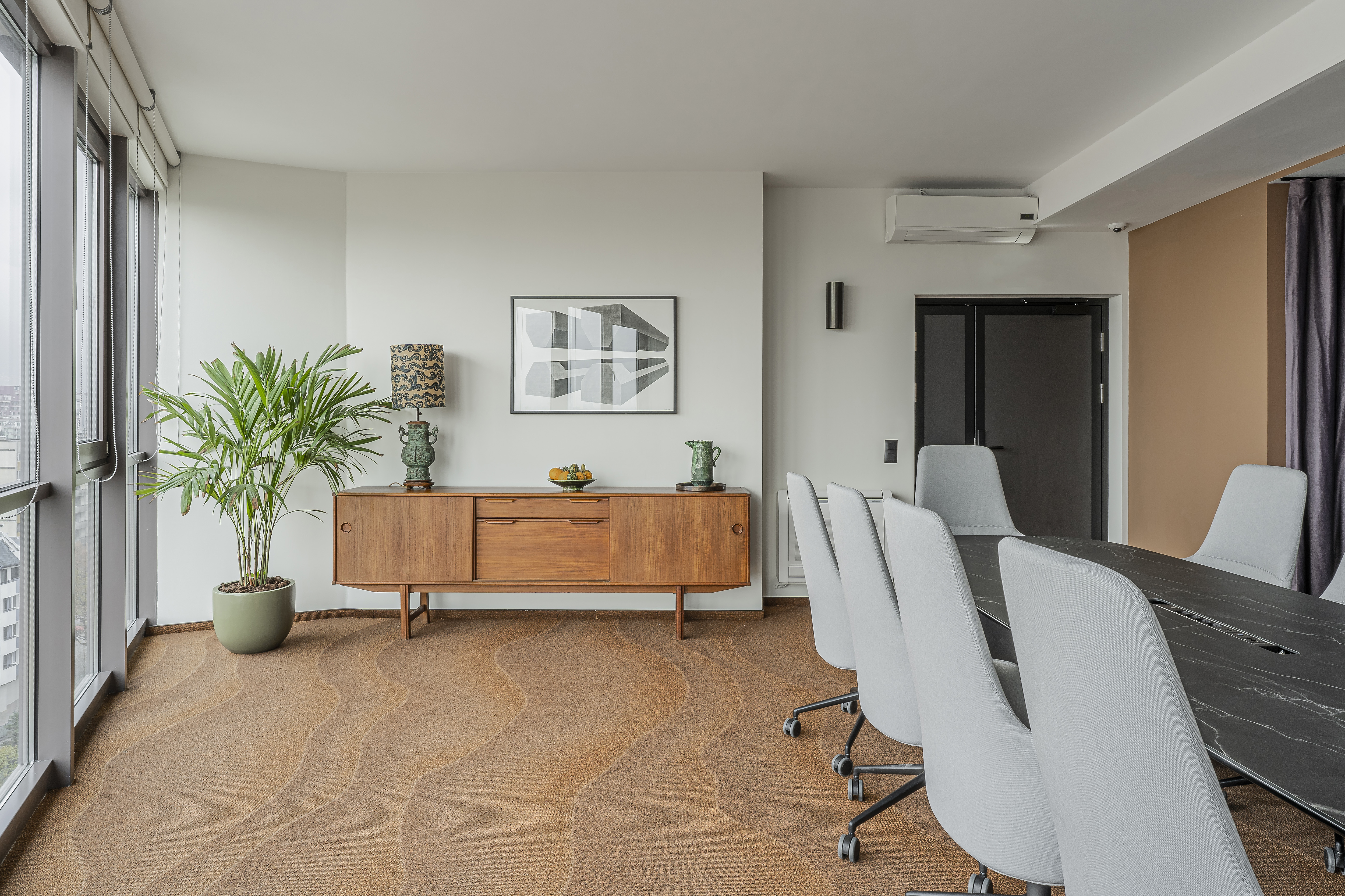 Our biggest meeting-room. With lots of natural daylight, this space is ideal for meetings and short workshops.